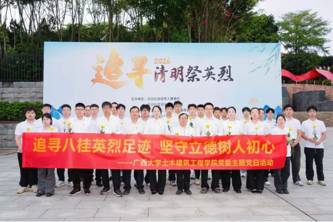 此次活动既是一场深刻的爱国主义教育,也是学院践行立德树人根本任务的具体实践,让师生在庄重的祭奠仪式中缅怀先烈,感悟革命精神。党员师生表示,将以革命英烈为标杆,铭记英烈事迹、传承英烈精神,切实把缅怀哀思转化为匠心育人、干事创业、奋发向上的实际行动,为学院教育教学事业高质量发展、建设新时代壮美广西贡献西大土木人的青春力量。