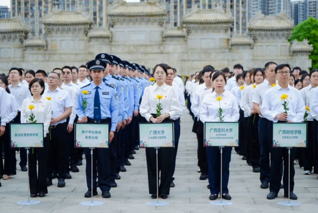 春染山河寄哀思,英烈精神永传承。为深切缅怀革命先烈、传承红色基因,厚植爱国主义情怀,深入践行立德树人根本任务,引导党员师生铭记英烈事迹、传承英烈精神,2026年4月1日9:00,我院党委组织党员师生代表前往自治区烈士陵园,开展“追寻八桂英烈足迹 坚守立德树人初心”主题党日活动,以英烈精神为引领,筑牢育人根基。学院党委副书记、纪委书记银宁带队,教职工党员和学生党员骨干共计30人参与此次活动。