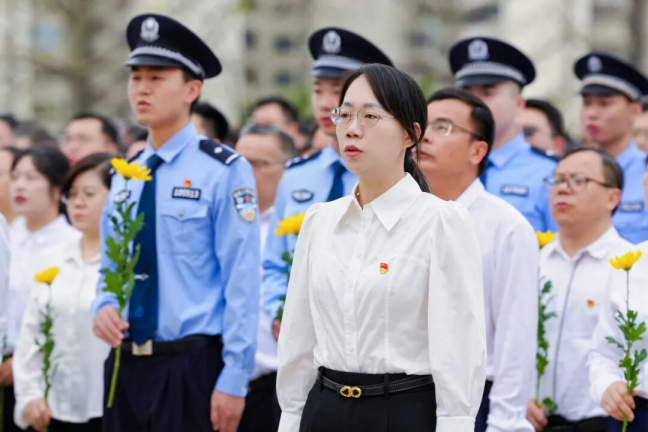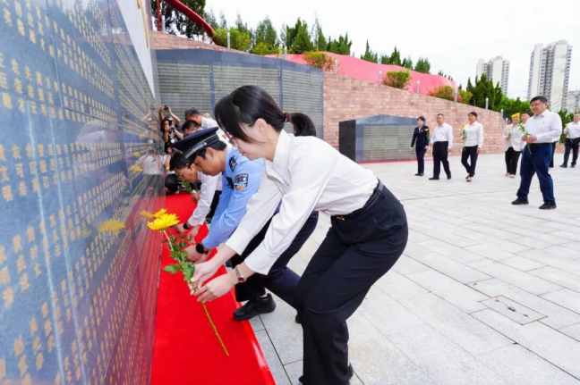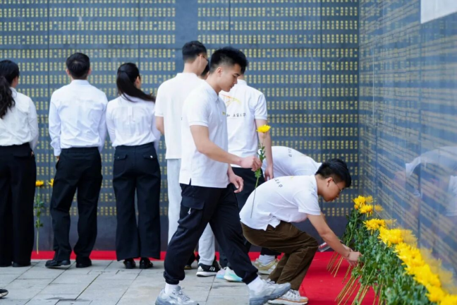 随后,全体师生瞻仰烈士纪念碑,在工作人员的指引下,手持素菊,有序向烈士英名墙敬献鲜花,表达崇敬之情。