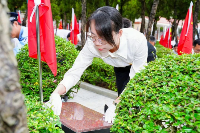 银宁书记前往英烈苑,亲手擦拭烈士墓碑、敬献鲜花。
