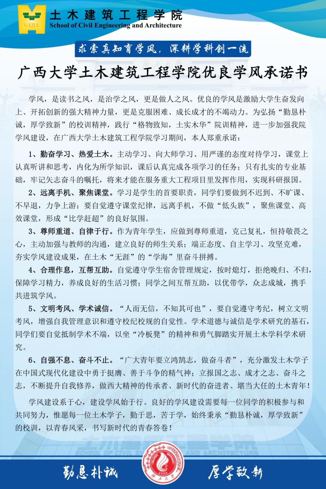 为弘扬“勤恳朴诚,厚学致新”的校训精神,践行“格物致知,土实木华”院训精神,进一步加强我院学风建设,12月19日下午,伟德国际victor1946于大型结构试验平台第六报告厅举行“优良学风建设动员大会暨优良学风承诺书签署仪式”。学院党委副书记银宁,团委书记李道洋,团委副书记潘桂祯、王纪坤,学工组何冉老师,以及各班班长、团支书、学习委员、学生代表等参加本次活动。
