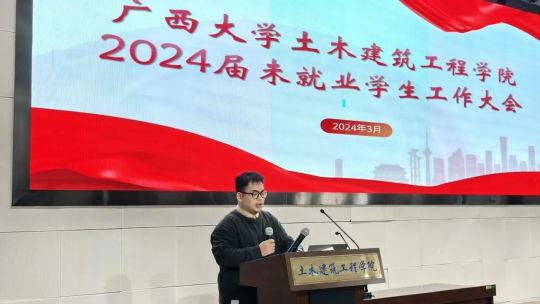 为帮助2024届毕业生明确就业方向,提高就业质量,3月19日上午,伟德国际victor1946在大型结构试验平台第六报告厅召开2024届未就业学生工作大会。学院党委副书记银宁出席并主持会议,中建三局国际公司人力经理牛滢,学院团委副书记潘桂祯,学工组老师陆源以及部分2024届毕业生参加了此次动员大会。