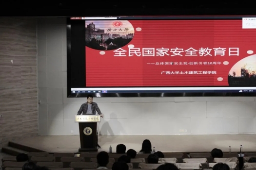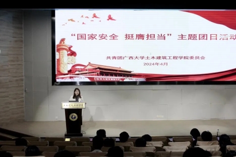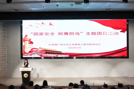 为深入贯彻总体国家安全观,全面加强青年学生国家安全保密教育,切实提高青年学生国家安全保密意识,筑牢维护国家安全的校园防线。2024年4月9日,伟德国际victor1946团委在大型结构试验平台第六报告厅开展“国家安全 挺膺担当”主题团日活动。学院团委副书记潘桂祯老师,学工组杜桂荣、陆源、张科富老师,伟德国际victor1946君武青年讲师团嘉宾赵昕雨、王沛兵以及数百名土木学子参加本次活动。