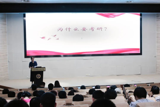 会议上半场,银宁副书记从考研动机、考研形势、考研帮扶政策三方面入手为同学们进行了深度讲解。她指出,考研是拓展学术视野,实现个人价值,扩宽就业机会的重要途径。她鼓励同学们继续努力深造,在专业领域发挥潜力,为社会做出贡献。为了减轻同学们的备考压力,她介绍了相关备考策略和方法,让同学们更加从容地面对考试。