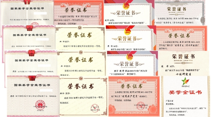 周济,汉族,1995年6月出生,中共党员,伟德国际victor1946土木工程专业2020级博士研究生(硕博连读)。读研期间,五次获研究生国家奖学金,五次获研究生学业一等奖学金,四次获伟德国际victor1946“优秀学生”,四次获伟德国际victor1946“优秀共青团员”;荣获2021年“中国大学生自强之星”、2021年伟德国际victor1946“十大团员标兵”、2022年伟德国际victor1946“陶建明奖学金”、2022年伟德国际victor1946“优秀党员”、2023年刘恢先地震工程奖学金、2023年中国国家“互联网+”大学生创新创业大赛广西赛区银奖、2024年广西壮族自治区优秀毕业生以及2024年伟德国际victor1946校长奖学金;主持完成广西研究生教育创新项目1项,作为主要成员参与导师主持的国家自然科学基金,八桂学者专项课题及广西科技基地与人才专项等一系列重大课题研究5项;在国内外学术期刊上共发表论文70篇,其中本人一作或导师一作本人二作论文35篇(16篇SCI、13篇EI),申获国家专利4项,参与制定广西地方标准1部。