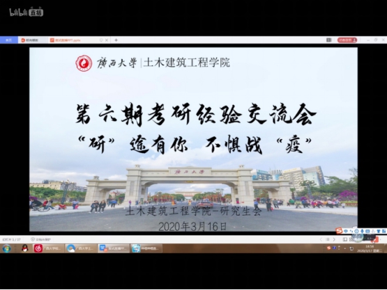 为有效提高学院毕业生考研升学率,学院研究生委员会于3月16日和17日举办了主题为“研”途有你,不惧战“疫”的第六期考研经验线上交流会,为学院考研毕业生在线分享复试经验,号召大家积极有效准备复试,提升录取概率。