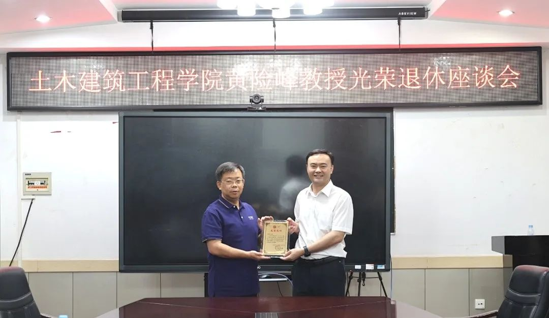4月23日下午,我院于学院三楼会议室为2025年4月正式退休的建筑规划系教授黄险峰举办了光荣退休座谈会。学院党委书记陈立华,副院长马少坤、杜彬以及与黄险峰教授共事多年的建筑规划系教师们参加座谈会。