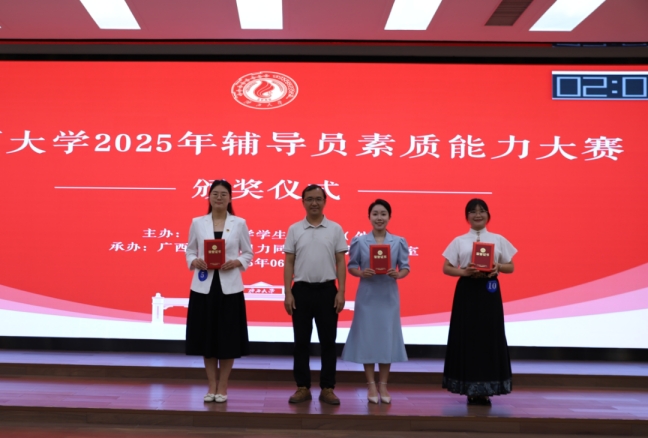 学生工作部(处)部(处)长谢能重为二等奖获得者颁发证书(右二为何冉)