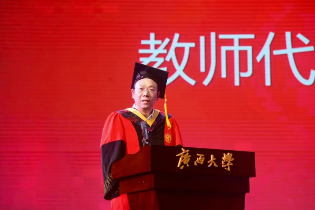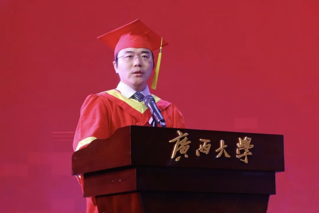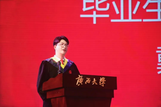 教师代表黄铭枫向毕业生们表达了热烈的祝贺与美好的祝福,他结合自身求学、工作经历,勉励同学们坚守“勤恳朴诚、厚学致新”的校训精神,将个人奋斗融入民族复兴伟业,同时强调要锚定小目标踏实前行,积极拥抱AI等技术变革,提升综合素养以适应行业转型需求,并寄语毕业生们铭记母校永远是精神港湾,以勇毅之心奔赴各自精彩人生。