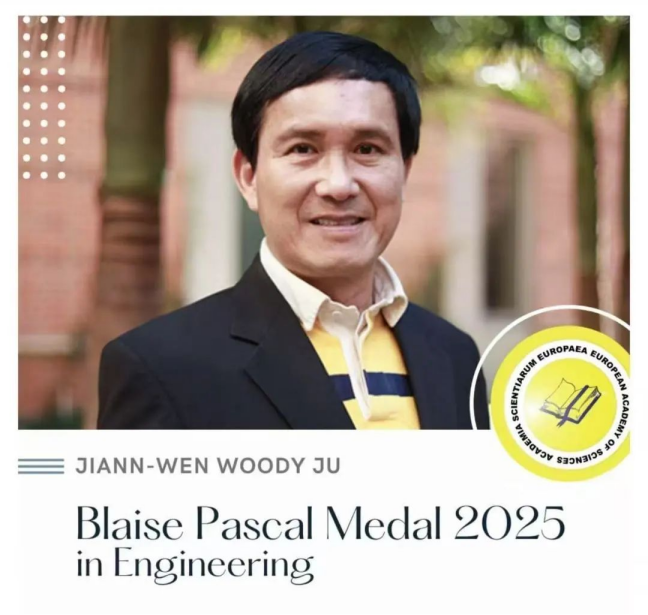 近日,我校讲座教授、美国加州大学洛杉矶分校终身教授、欧洲科学艺术院院士Jiann-Wen Woody Ju朱建文博士荣获2025年度欧洲科学院the European Academy of Sciences (Academia Scientiarum Europaea)工程学部布莱兹·帕斯卡奖章(Blaise Pascal Medal in Engineering)。该奖项在工程学部每年仅授予一人,朱教授是第一位得到布莱兹·帕斯卡工程奖章的亚裔学者。