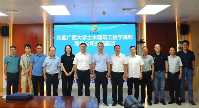 韦世明对我院的到访表示热烈欢迎,并详细介绍了广西高速公路建设中的重大项目规划与实施情况,分享了在项目一线开展党建活动的经验,展示了如何通过党建引领保障重大项目的顺利推进,分享了公司在高速公路建设中应用新技术、新工艺的实践经验。他建议双方围绕人才培养、项目合作、科技创新等方面,积极探索深度合作模式,推动双方资源的高效整合与优化配置,不仅可以为高校科研成果转化提供平台,也能为企业的技术创新提供智力支持,实现产学研的深度融合,推动行业技术进步。