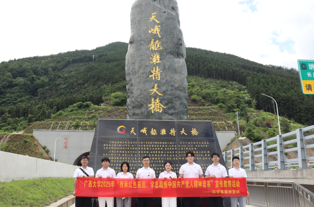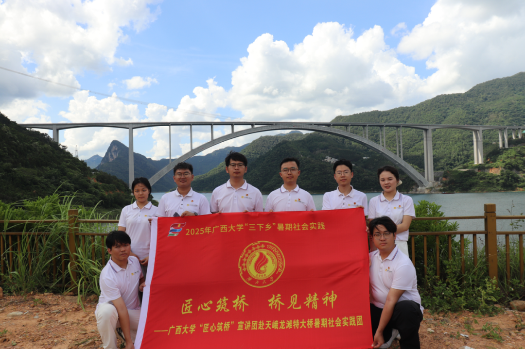 就像天峨龙滩特大桥连接峡谷两岸,这支队伍正以脚步为尺,在红水河畔的调研里丈量理论到实践的跨度,在山河大地的行走中触摸祖国的肌理;以目光为炬,在大桥的钢构纹路里发现中国建造的精神密码;以耳畔为帆,在村民的笑语里收纳人民对美好生活的向往;以赤子之心为钟,在时代的潮涌里校准前行的节拍。当他们带着此行的感悟奔赴下一片山河,必将如桥梁般扎根大地、向着远方,在国家重大工程的建设中挺膺担当,让青春的智慧与力量,成为托举中华民族伟大复兴的坚实桥基。