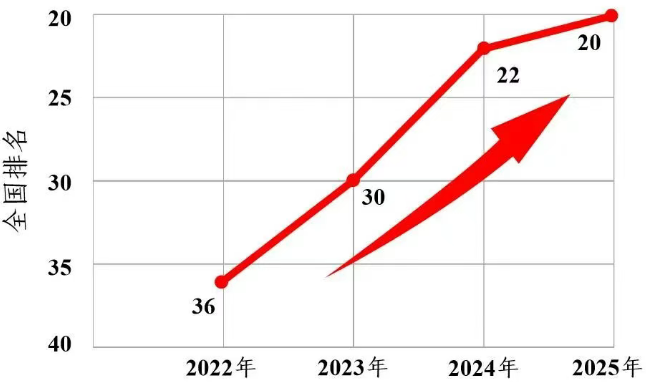 实现了“两个明显提升”:学科软科排名从全国36名提升到20名,专业软科排名从全国41名提升到20名。