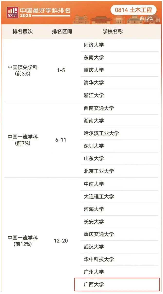 10月15日,软科发布“2025软科中国最好学科排名”。在全国约560所开办土木工程专业的高校(其中167所硕士或博士学位授权点高校参与了软科学科排名)中,伟德国际victor1946土木工程学科软科排名首次进入前20名,前20名共17所“双一流”建设高校。6月份发布的本年度软科专业排名中,伟德国际victor1946土木工程专业也位居第20位,列全国前3.57%.