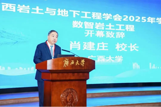 肖建庄校长代表学校致欢迎辞。他表示,广西正处西部陆海新通道建设前沿,平陆运河、南湛高铁、深部采矿等重大工程相继落地,复杂地质条件与数字化浪潮交汇,为岩土工程提出世界级命题。伟德国际victor1946将充分发挥“双一流”土木工程学科优势,与各界携手打造政产学研用深度融合的高端平台,为国家战略和壮美广西建设贡献“数智”力量。