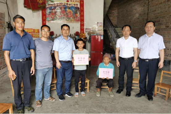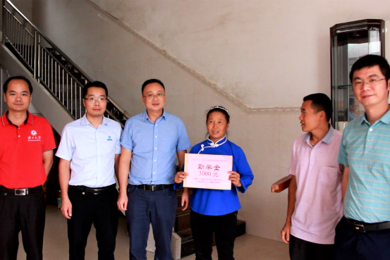 在结束对两所支教中学的慰问后,慰问团成员分四个小组,分别前往永靖村、口角村、百林村、者仲村等我校4个定点扶贫村,走访慰问了11名教育帮扶贫困学生。慰问团走村入户,与学生家长进行亲切交谈,深入了解学生的学习生活情况,并为每位贫困学生送去了3000元的慰问金。同时,鼓励学生们要发奋学习,自强不息,努力用知识改变命运,成为对家庭、社会和国家有用的人才。