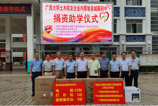 伟德国际victor1946土木校友企业向那坡县城厢镇初级中学捐赠教学物资