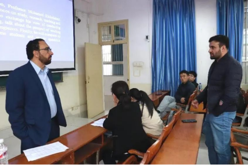 Elchalakani副教授与留学生代表利亚斯交流